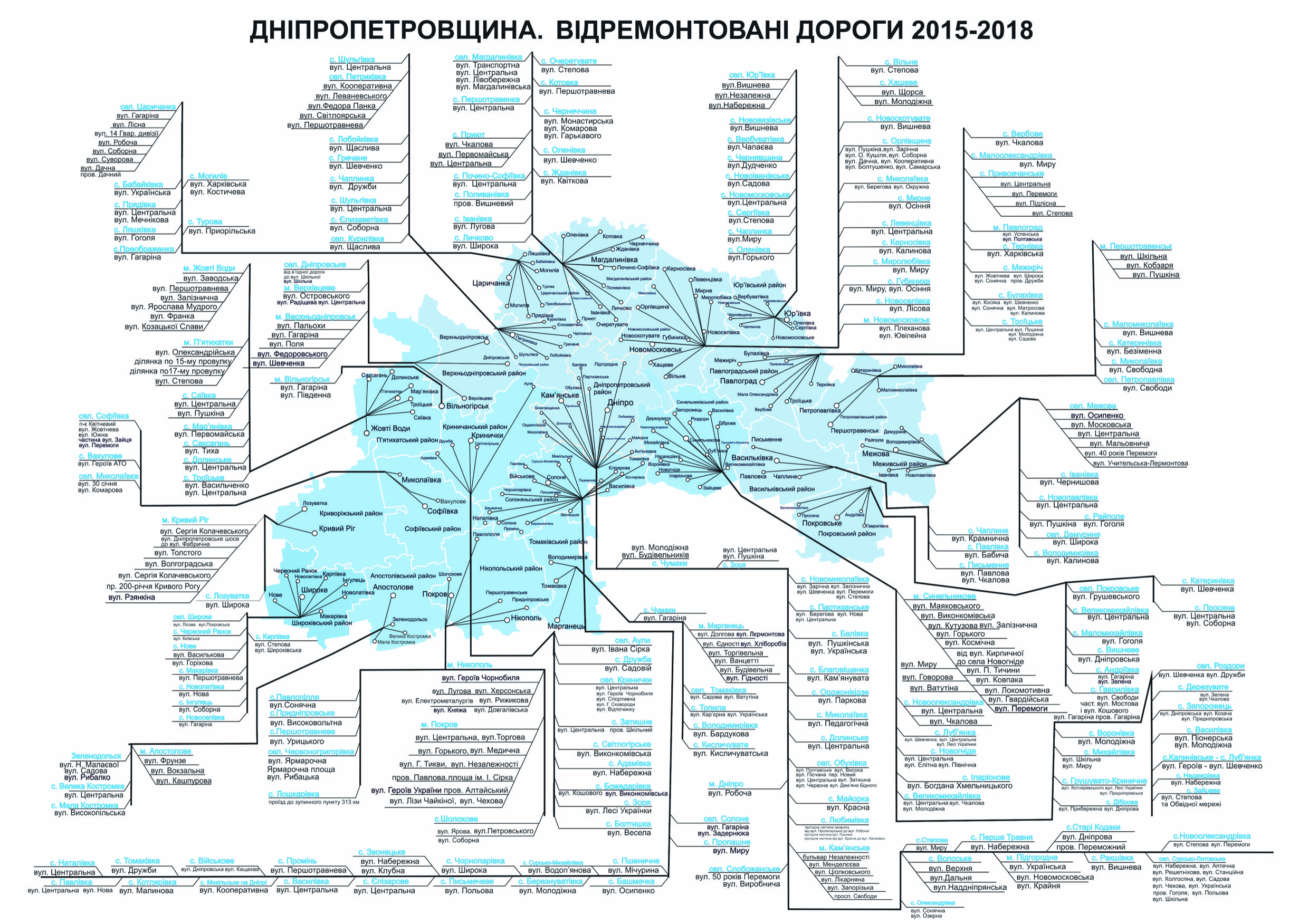 За його даними, потрібно зробити ще в 8-10 разів більше, і тоді всі дороги в межах населених пунктів Дніпропетровської області будуть приведені в порядок.