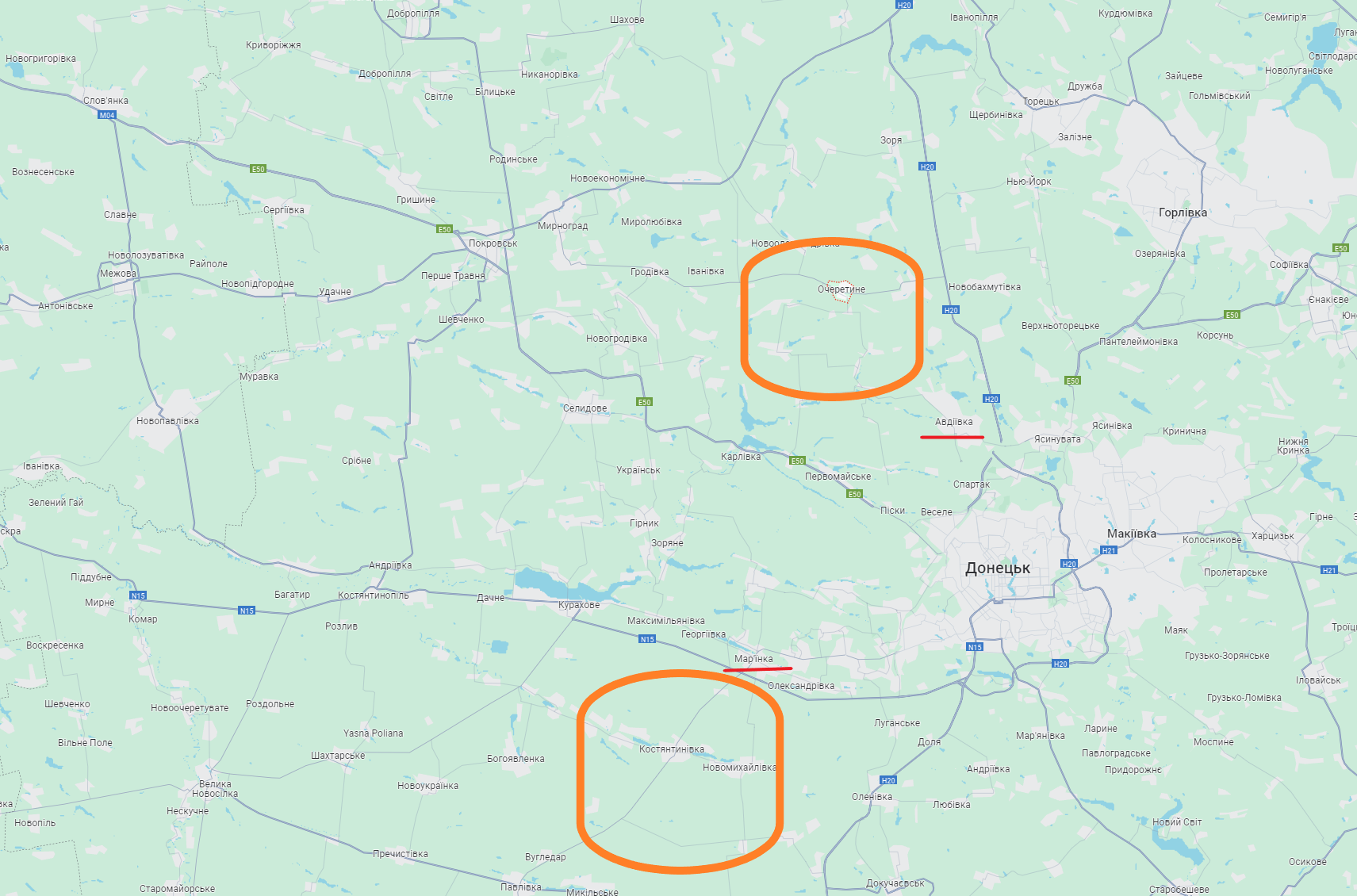 На разі на Маріїнському напрямку точаться бої. Складною є ситуація і на Авдіївському напрямку, де розташовані села Очеретинської ТГ.