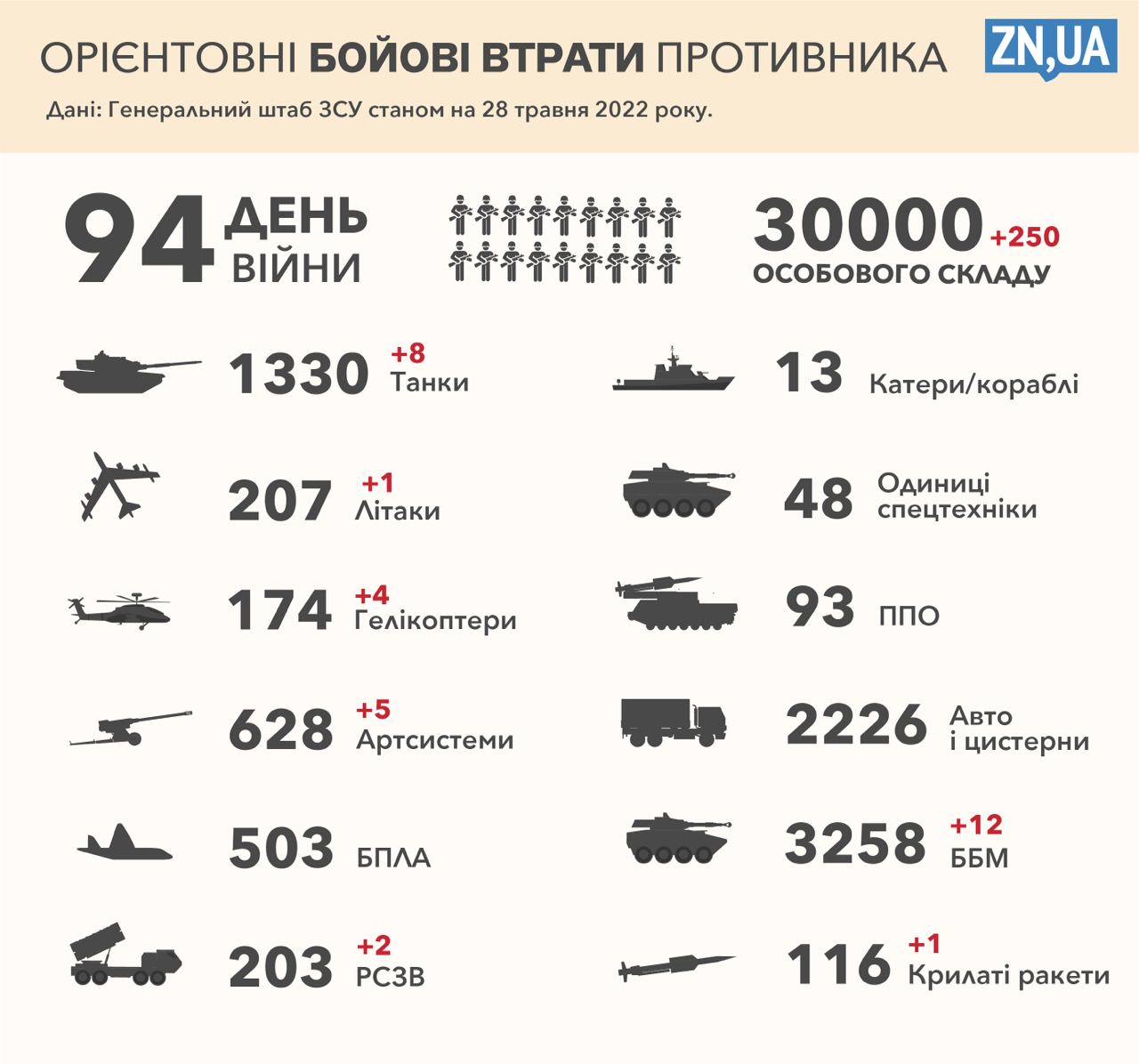 Загальні бойові втрати противника з 24.02 по 28.05 орієнтовно склали: