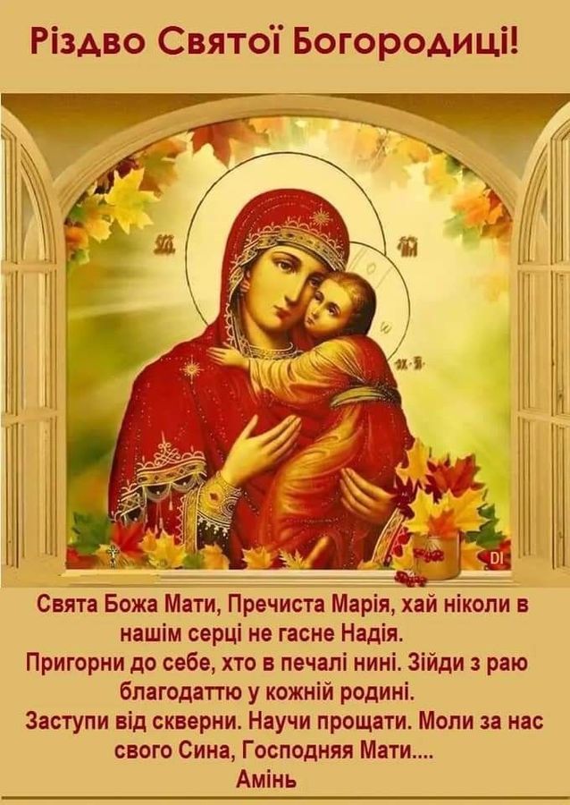 Привітання з Різдвом Пресвятої Богородиці