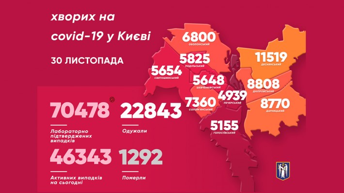 Найбільше випадків захворювання виявили в Дніпровському районі - 256, Подільському - 230 і в Деснянському районі - 180 випадків.