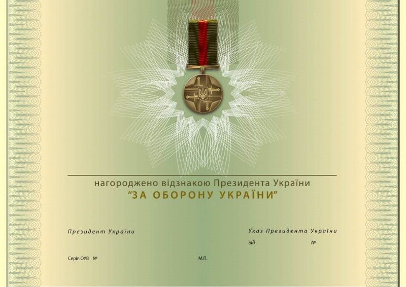Також нагороду зможуть отримати представники центральних і місцевих органів виконавчої влади чи інших держустанов, органів місцевого самоврядування, а також підприємств, установ і організацій, що виконували завдання для оборони, виявивши самовідданість і зробивши суттєвий особистий внесок у посилення захисту України.