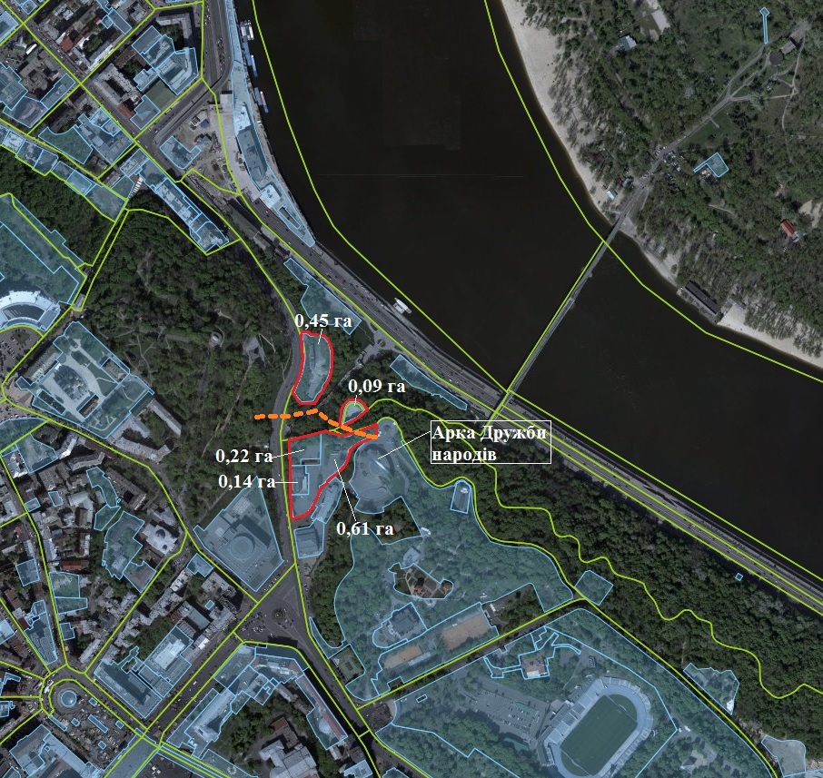 Зокрема, дві ділянки - 0,14 га і 0,61 га по вул. Володимирський узвіз, 4 до 2025-2026 років знаходяться в оренді ВАТ "Будівельні технології".