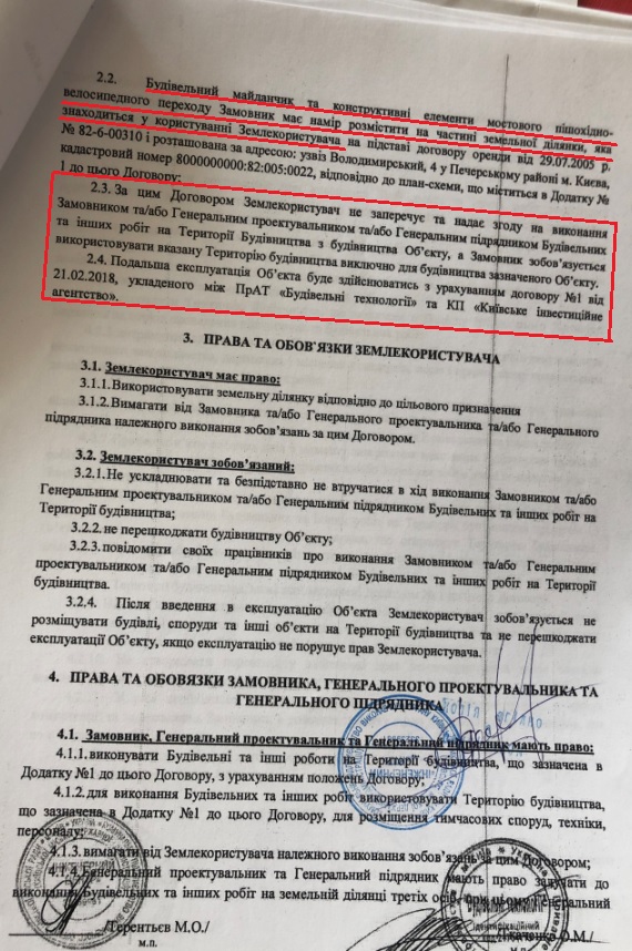 На ділянці 0,61 га встановлені опори "мосту Кличка". На ній планують розмістити станцію канатної дороги. Згідно з договором, підприємство не заперечує і не дає згоду на проведення робіт на орендованій ними ділянці. А КП, в свою чергу, зобов'язався "у разі необхідності надавати необхідне сприяння землекористувачеві" у розвитку проекту на орендованій ділянці.