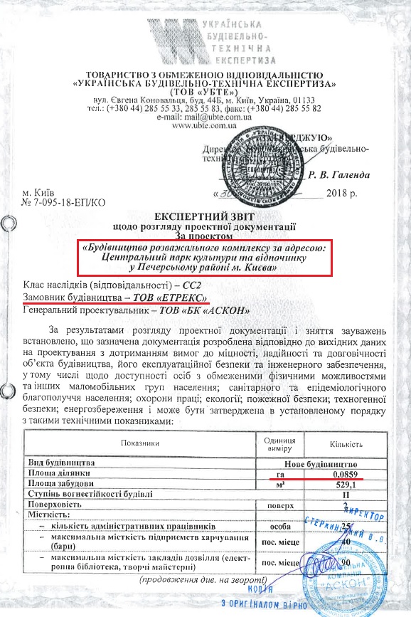 Також в оренді ТОВ "Етрекс" до 2028-2029 рр. знаходяться ділянки площею 0,22 га і 0,45 га по вул. Володимирський узвіз, 4 і 6, а також 0,09 га - в Центральному парку культури і відпочинку. Ці ділянки компанія отримала в оренду в 2003-2004 рр. під будівництво адміністративної будівлі, готелю та розважального комплексу. У серпні 2018 по ділянці 0,09 га фірма отримала експертний звіт по цьому проекту, що передбачає зведення двоповерхової будівлі площею 530 кв. м. По ділянці 0,45 га фірма отримала всі необхідні документи для будівництва, проте не змогла отримати дозвіл ДАБК.