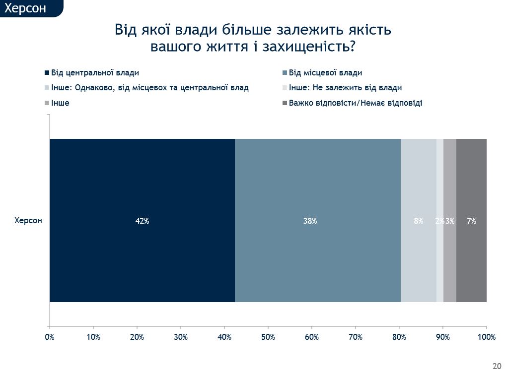 Опитування проведене соціологічною компанією Info Sapiens на замовлення Міжнародного республіканського інституту (IRI). Дані збиралися в місті Херсон 25-28 сентября 2020 методом телефонного інтерв'ю (CATI). Розмір вибірки становить n = 600 постійних жителів міста віком від 18 років. Вибірка є репрезентативною. Статистична похибка не перевищує 4%.