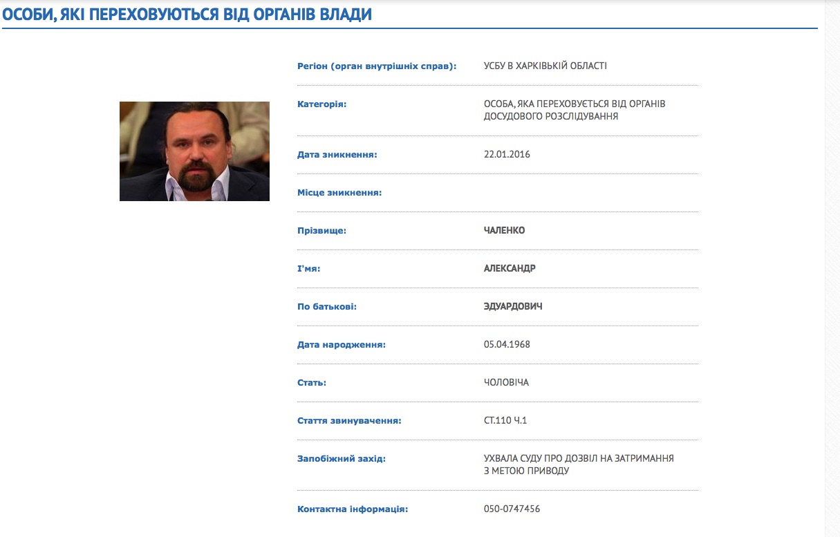 Як зазначається, з поля зору українських правоохоронців Чаленко зник 22 січня 2016 року.