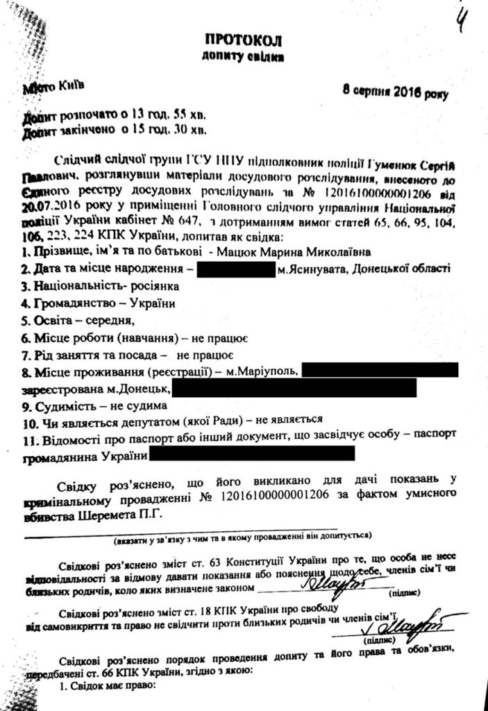 Журналісти отримали копії допиту Марини Мацюк, що підтверджують, що розмова в поліції дійсно відбулася.