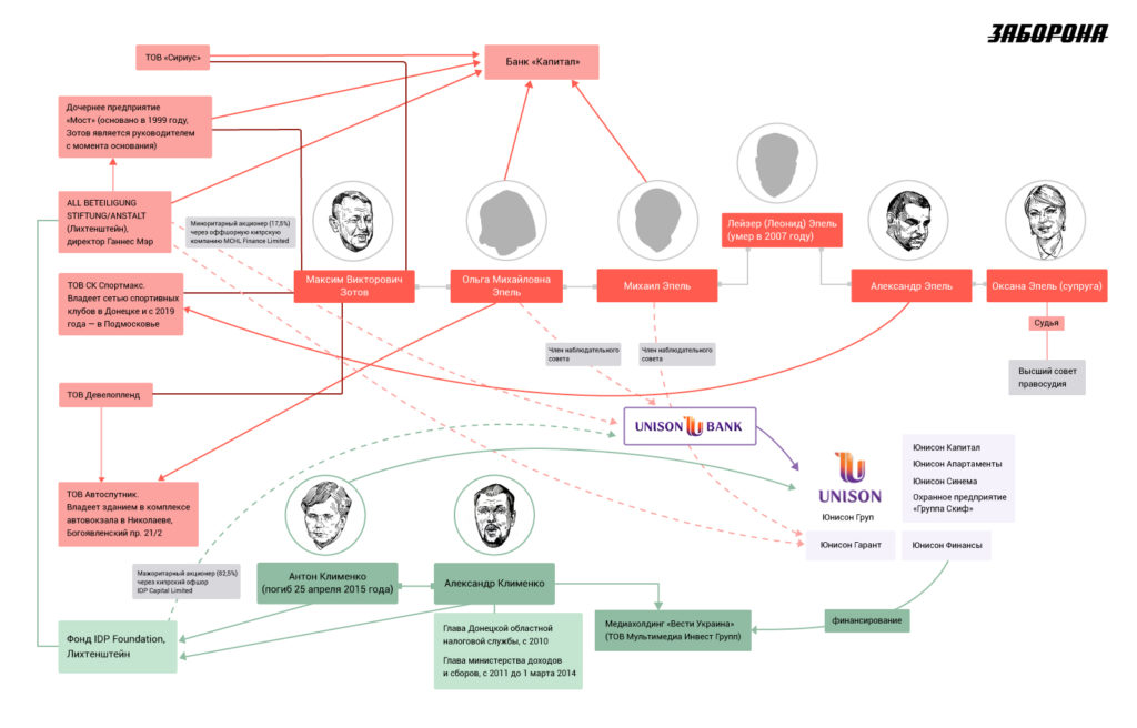 Голова сімейства входив до наглядової ради пов'язаної з Клименком страхової фірми «Юнісон-Гарант», сам ексміністр використовував підконтрольний Епілю банк «Капітал» для відмивання грошей.