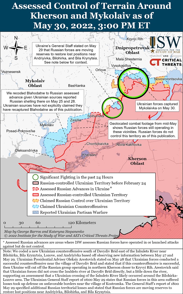 «Обмежена українська контратака у північній частині Херсонської області не просунулась далі, але порушила російські операції», – сказано також у звіті.