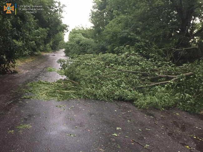 Рятувальники ліквідували наслідки негоди у Первомайському та Вознесенському районах Миколаївської області. Через сильні пориви вітру та зливу сталося падіння дерев та гілок, які перекрили автошлях Н-24 «Благовіщенське-Миколаїв» у декількох місцях, а також кілька трас. Рятувальники прибрали 14 дерев. Рух транспорту відновлено.