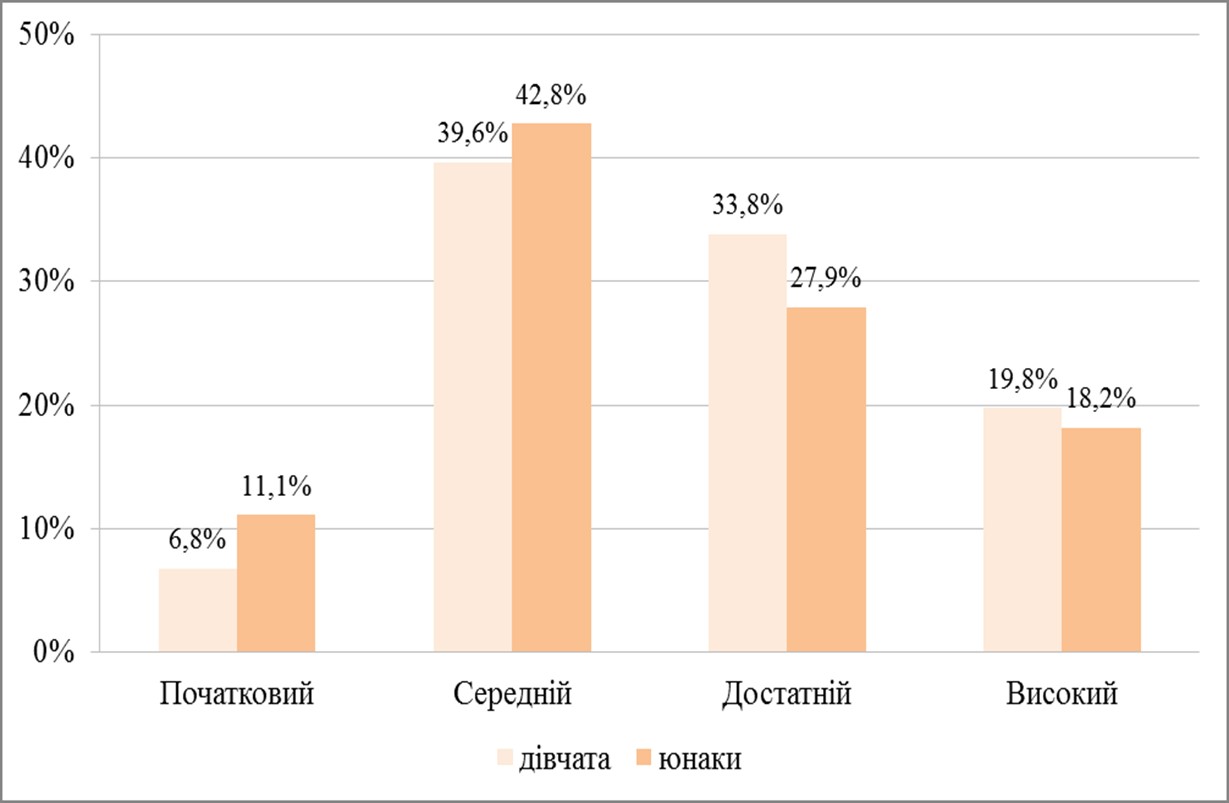 Рівні навчальних досягнень школярів відповідають таким оцінкам: начальний рівень ─ 1-3 бали, середній─4 - 6 балів, достатній ─ 7-9 балів високий ─ 10-12 балів.