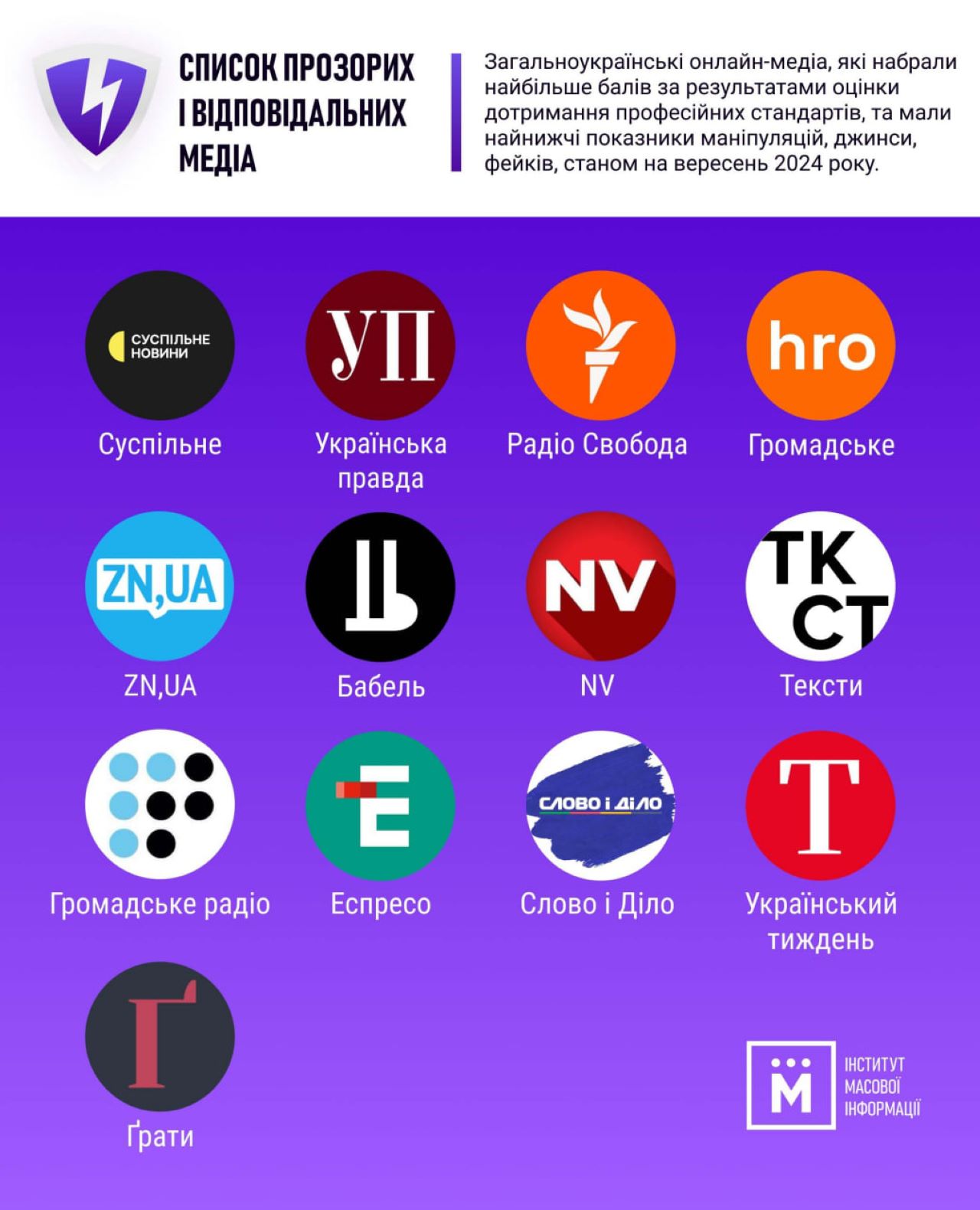 Так, крім ZN.UA до Білого списку в другому півріччі 2024 року увійшли: