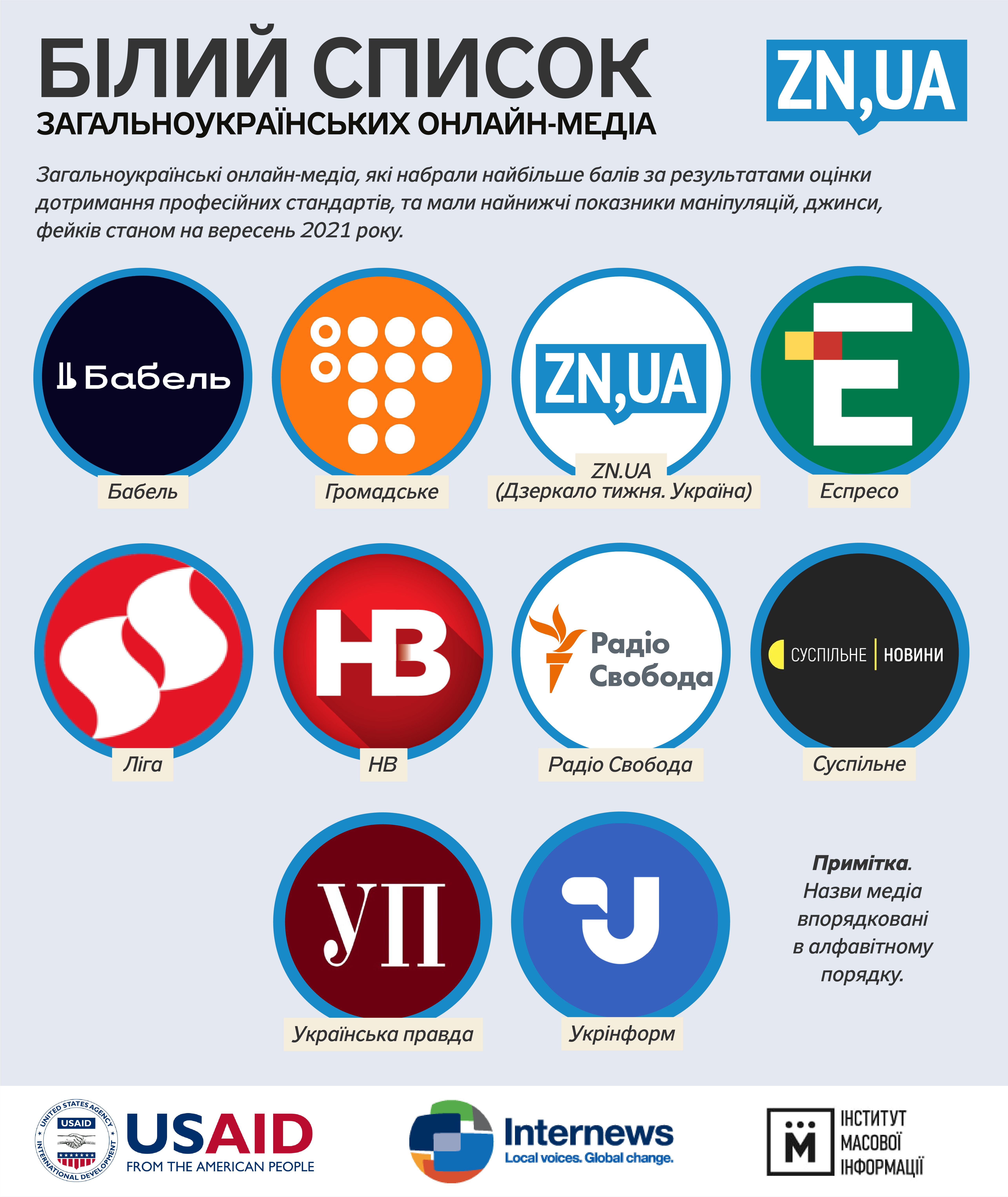 Видання ZN.UA знову увійшло до "Білого списку" найякісніших український онлайн-ЗМІ. Перелік складали в Інституті масової інформації.