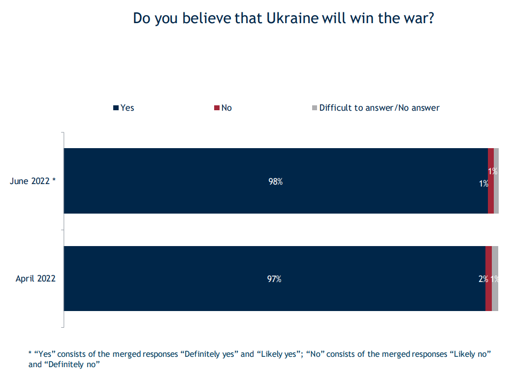 Обидва наведені показники збільшилися, порівняно з аналогічним дослідженням, здійсненим у квітні: віра в перемогу зросла на 1%, у повернення контролю над всією територією – на 11%.