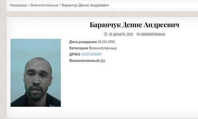 Денис Баранчук — це фото мама знайшла на одному з російських сайтів. Там він значиться як військовополонений