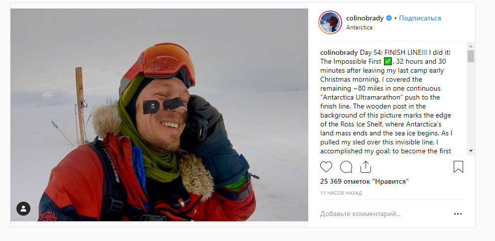 За даними агентства, 33-річний мешканець штату Орегон зміг за 54 дні подолати 1500 км. Разом з собою американець тягнув сани зі спорядженням і провіантом. Останній марш-кидок приблизно на 130 кілометрів зайняв у нього 32 години, розповів він в своєму Instagram.