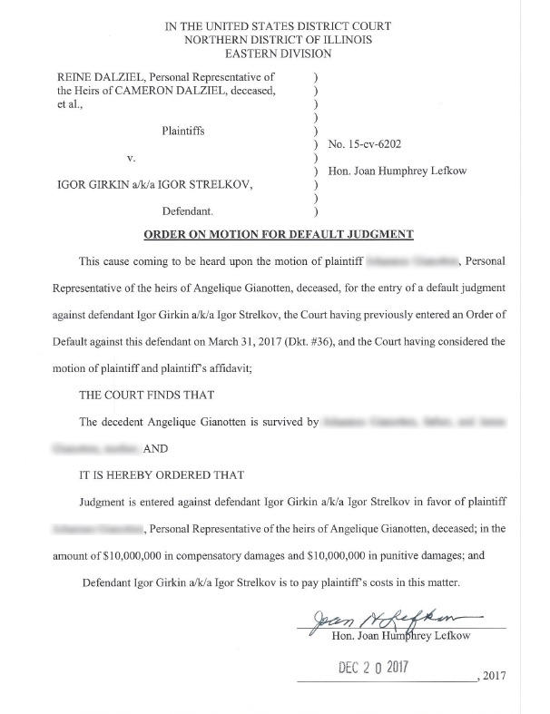 Адвокати родичів мають намір заарештувати майно Гіркіна, але, за їхніми словами, цього буде недостатньо, щоб виплатити сотні мільйонів доларів.