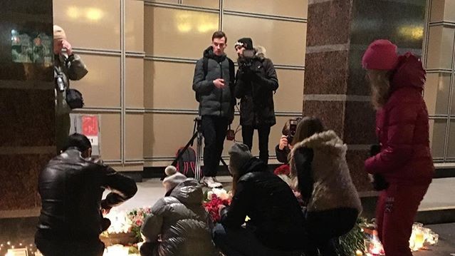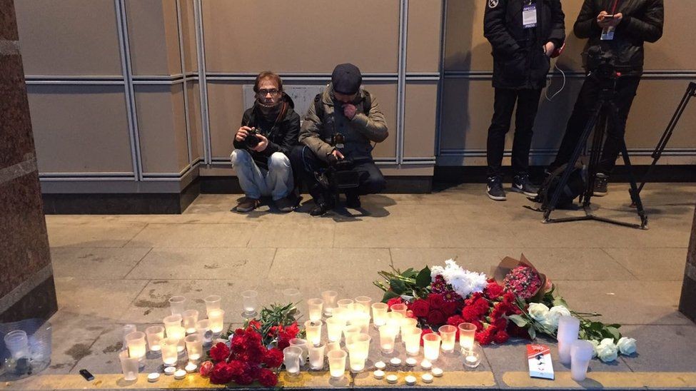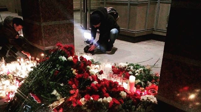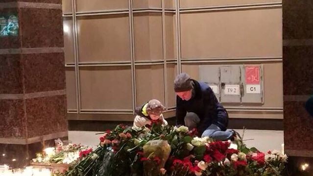 Мешканці Санкт-Петербурга весь ранок несуть квіти та свічки до станцій метро "Сінна площа" та "Технологічний інститут", на перегоні між якими напередодні прогримів вибух у вагоні поїзда. Народні меморіали з'явилися і просто в залах станцій. Користувачка Instagram ameli_k пише: "Я працюю на Техноложці. У нас тут сьогодні ось так: багато теле- та фото-камер, багато людей. Багато стоять і дивляться на квіти, довго не рухаючись. Страшно, коли звичний безпечний світ раптом перетворюється у війну".