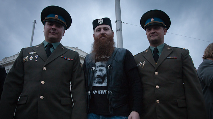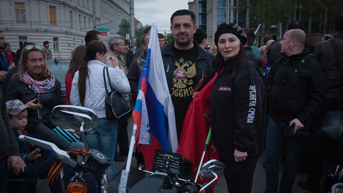 Двоє учасників російського мотоклубу "Ночные волки" прибули 2 травня з Братислави до Відня і поклали вінки до пам'ятника радянському Воїну-визволителю на площі Шварценбергплатц.