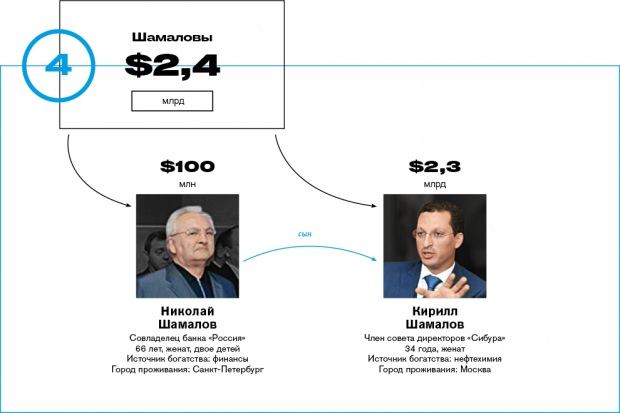 Сім'я Шамалових, яку тісно пов'язують з президентом РФ Володимиром Путіним, вперше потрапила до рейтингу найбагатших сімейних кланів Росії за версією журналу Forbes, відразу посівши четверте місце.