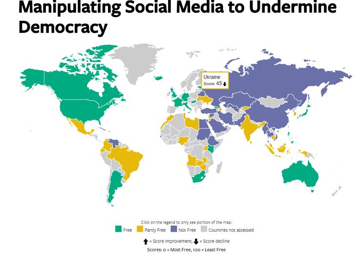 За останній рік тактика онлайн-маніпулювання і дезінформації позначилася на виборах у 18 країнах, сказано у звіті міжнародної правозахисної організації Freedom House "Свобода в мережі-2017", оприлюдненому 14 листопада.