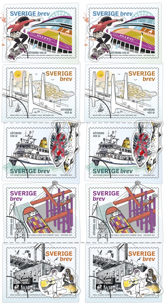 Крім того, приділяється увага святкуванню дня міста Гетеборга, якому в цьому році виповнюється 400 років. На марках художники зобразили Гетеборг в п'яти сценах, які були запропоновані жителями міста.