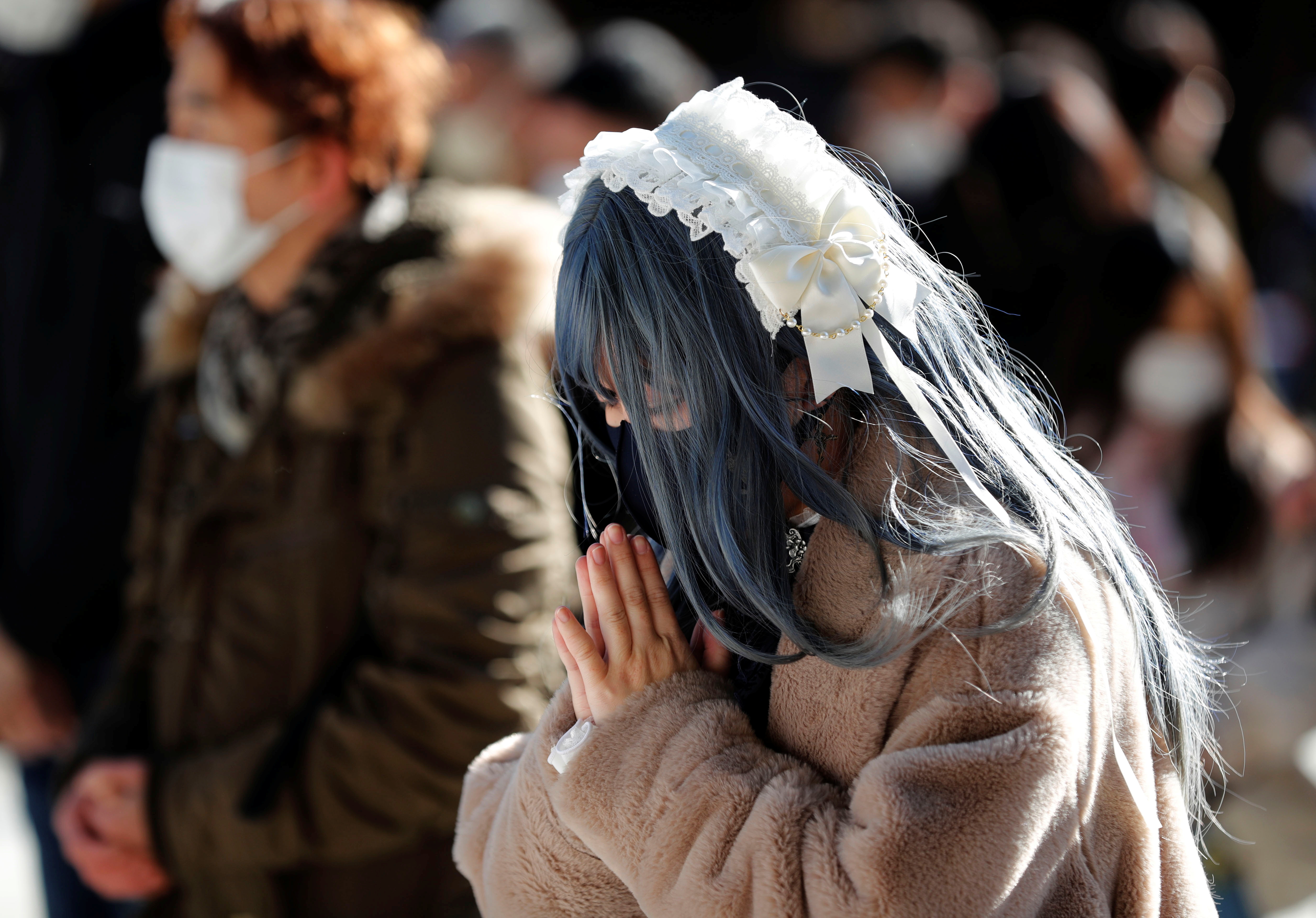 У японському Токіо люди прийшли в храм, щоб помолитися в перший день Нового року.