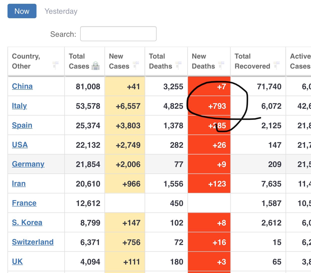 Станом на 21 березня найбільше померлих за добу в Італії - 793 людини, в Іспанії - 300 осіб.Китайські лікарі описали процес зараження і одужання заражених коронавірусом. Загалом період одужання триває 22 дні. Більшість смертей сталися на 18 день після виявлення перших симптомів.