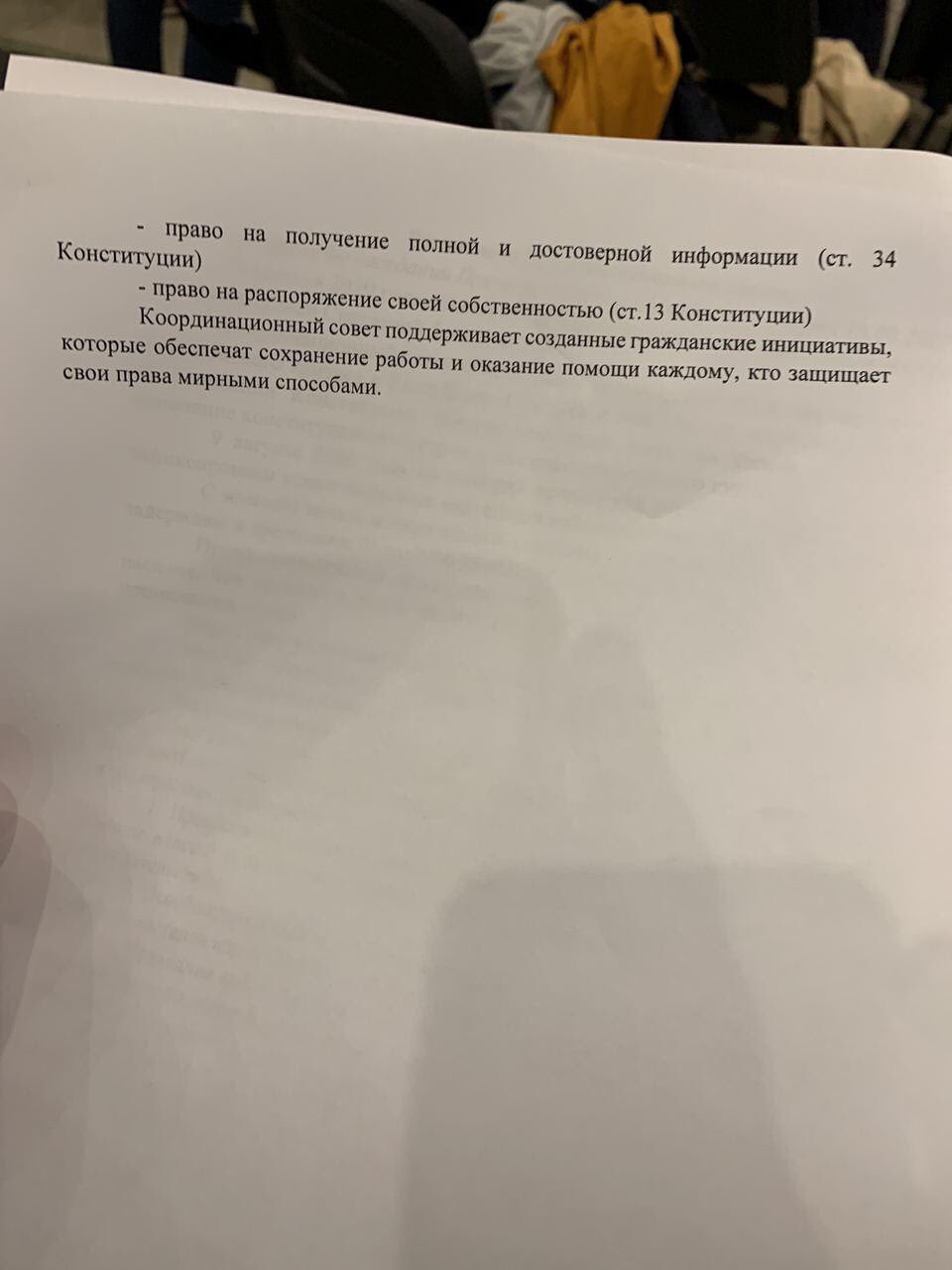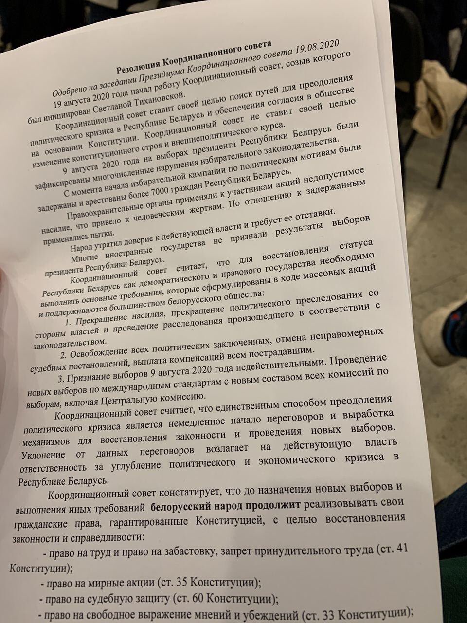 Члени президії закликали владу Білорусі негайно почати переговори з опозицією і попередили, що до призначення нових виборів народ Білорусі продовжить реалізовувати свої права на страйк, мирні акції і вільне вираження думок.