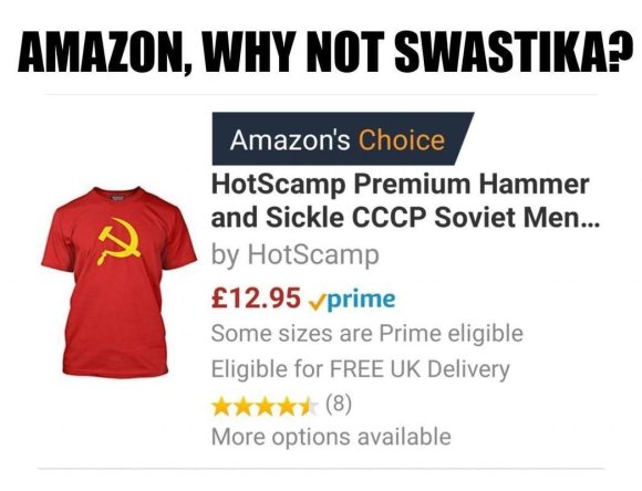 Литовські активісти організували кампанію проти продажу на міжнародному майданчику Amazon товарів із зображенням радянської символіки. Зазначено, що на сайті Amazon можна знайти десятки футболок з радянською символікою - серпом і молотом. Про це повідомляє Delfi.