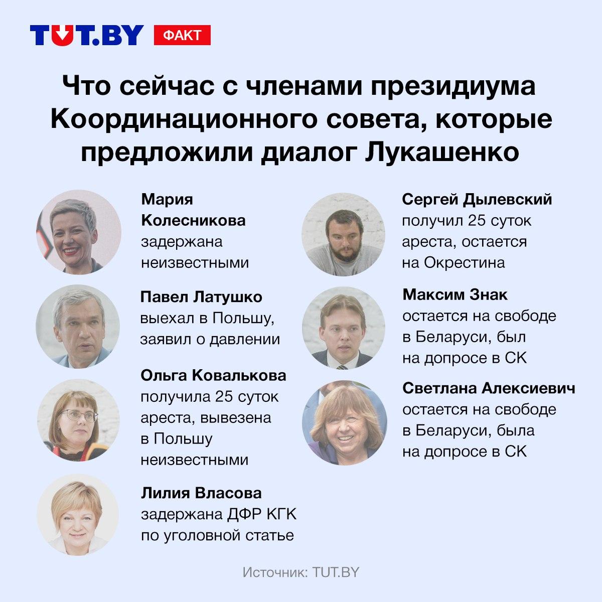Координаційна рада виступила із заявою, в якій вимагає негайного звільнення Колеснікової, Власової та інших затриманих, а також підтвердження можливості вільного повернення Ковалькової, Латушка і Тихановської.