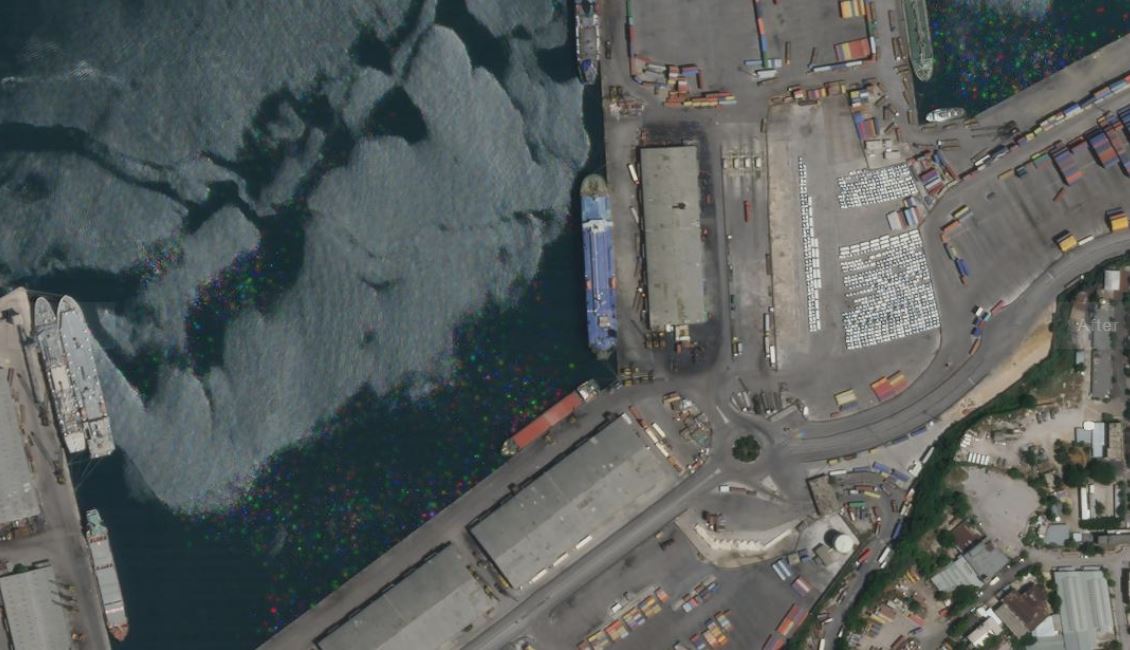 На схід від порту пошкоджено дахи будівель. На захід від місця вибуху пошкоджені портові споруди.