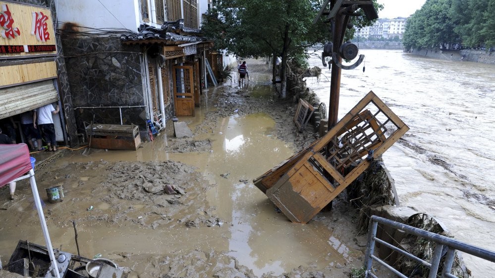 На південному заході Китаю в провінції Гуйчжоу другу добу не припиняються сильні зливи, які спричинили потужні повені.