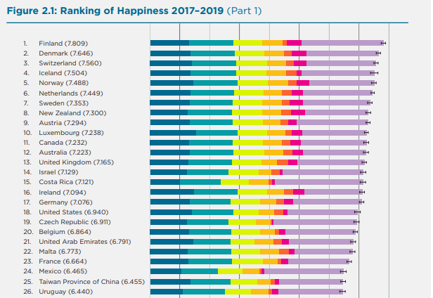 Підрозділ ООН з пошуку рішень для стабільного розвитку опублікував щорічний рейтинг найщасливіших країн світу (World Happiness Report 2019). Рейтинг щастя в 2019 році очолила Фінляндія. Слідом за нею йдуть Данія та Швейцарія. У свою чергу, Україна знаходиться на 123 місці. Про це йдеться в доповіді World Happiness Report, опублікованому в п'ятницю, 20 березня.