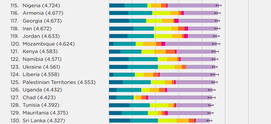 Для порівняння, Білорусь в рейтингу перебуває на 75 позиції, Росія -на 73, Польща - на 46.