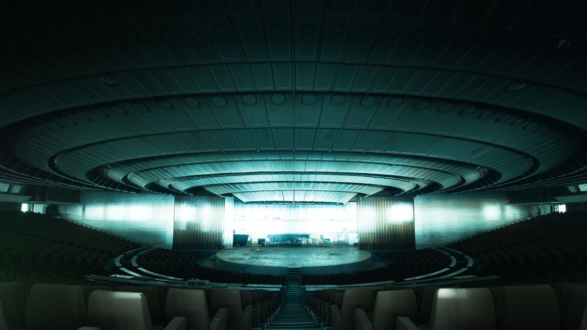 Покинутий культурно-спортивний комплекс в Талине, освітлений таємничої смужкою світла, що проникає крізь маленькі вікна