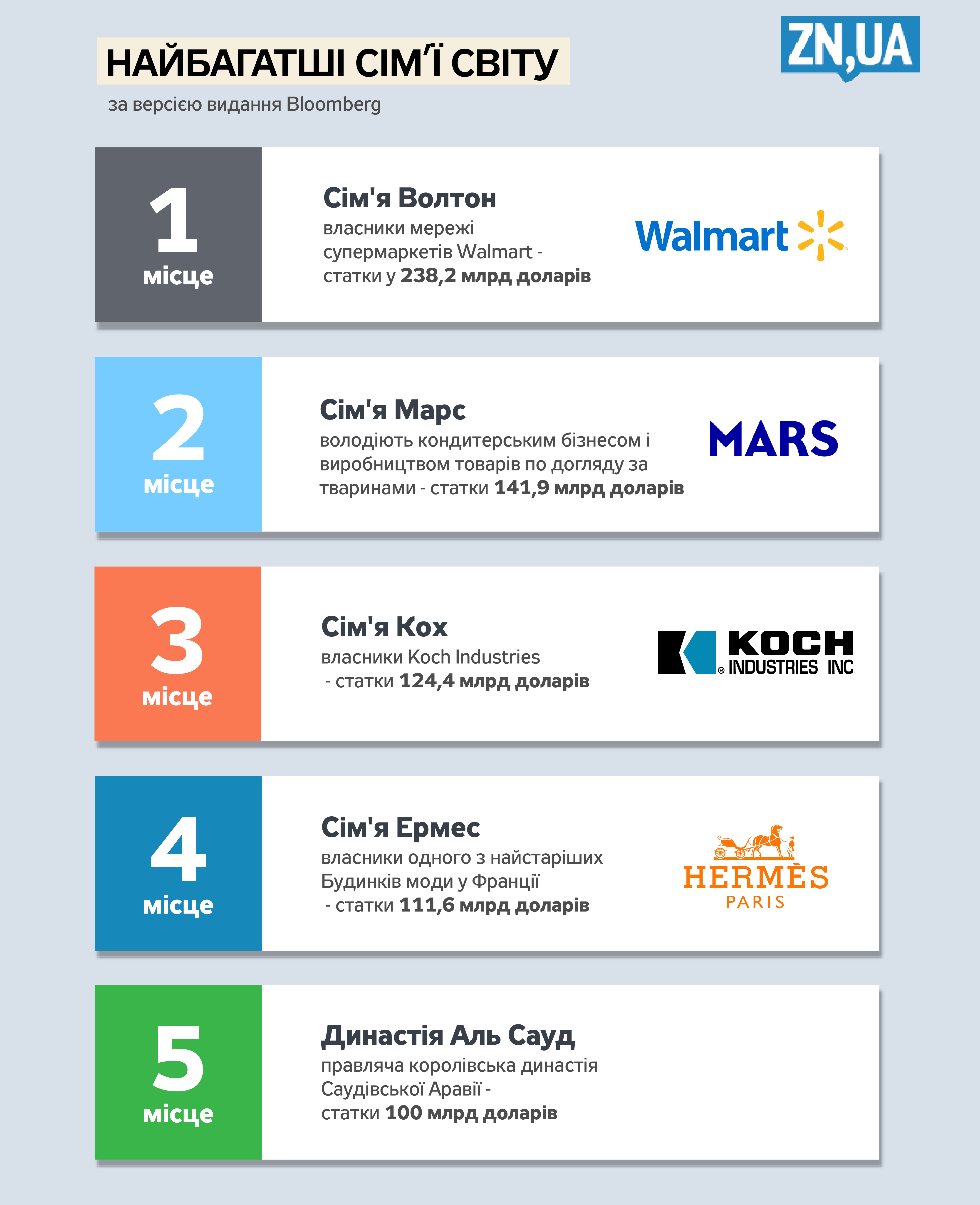 - Сім'я Ермес (власники одного з найстаріших Будинків моди у Франції) - статки 111,6 млрд доларів;