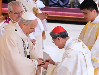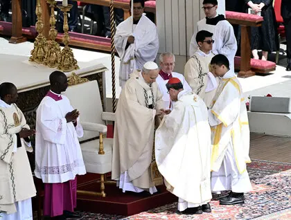 Лев XIV отримав символи папської влади —"перстень рибалки" тапаллій.