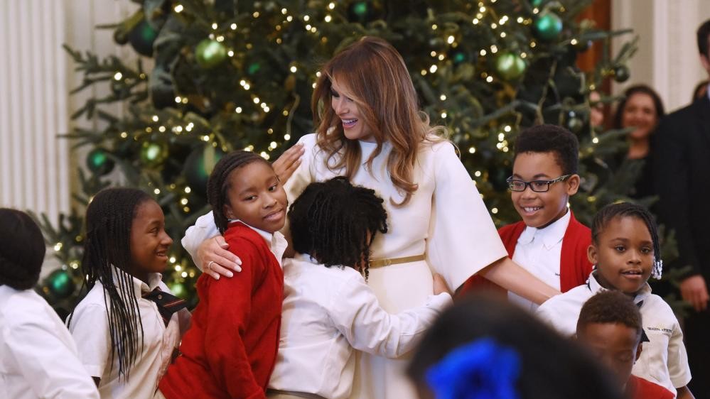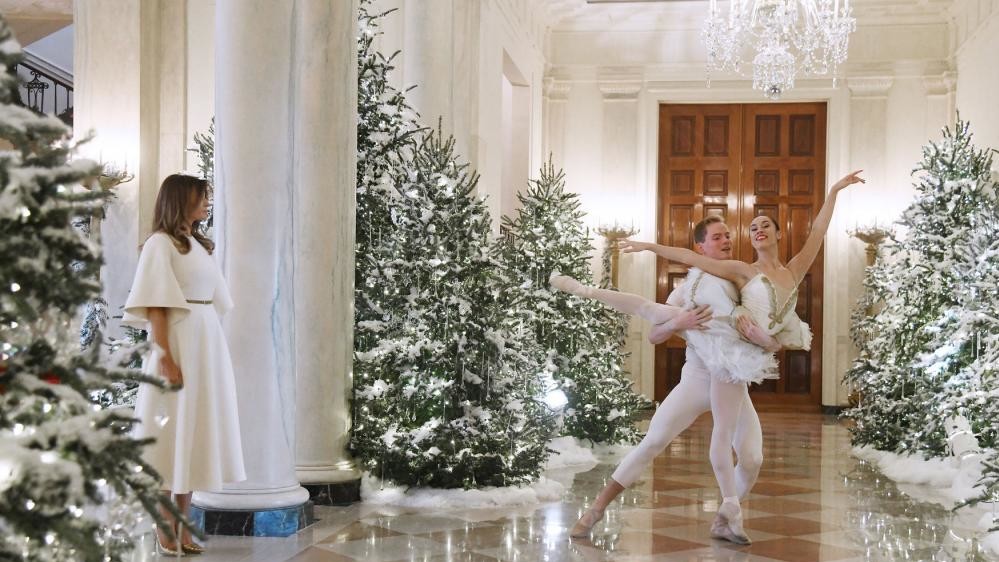 Головною прикрасою Білого дому стала 5,5-метрова ялинка, встановлена в Блакитній кімнаті. Крім неї, в Білому домі розмістили ще 52 дерева. Оцінити різдвяне оздоблення Білого дому першими запросили дітей. Для зустрічі маленьких гостей Меланія Трамп вибрала білосніжне плаття Christian Dior з широкими рукавами. Хтось із запрошених на урочистості малюків навіть назвав першу леді ангелом. Головним частуванням для відвідувачів резиденції став пряниковий Білий дім. Також кондитери приготували тридцять одну тисячу печив.