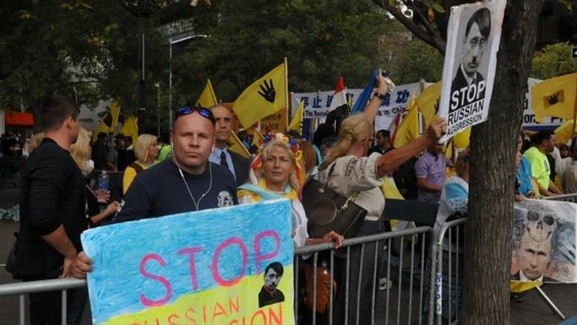 Раніше повідомлялося,що у Нью-Йорку почалися протести проти приїзду президента РФ Володимира Путіна в США. Більшість учасників акцій складають представники української діаспори в США, представники кримськотатарського народу, вихідці з Білорусі.