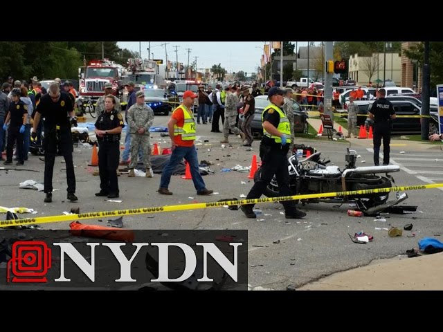 За інформацією CBS News, легковий автомобіль, за кермом якого перебувала 25-річна Эдача Чемберс, спочатку врізався в поліцейський мотоцикл, а потім в'їхав у натовп людей.