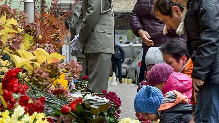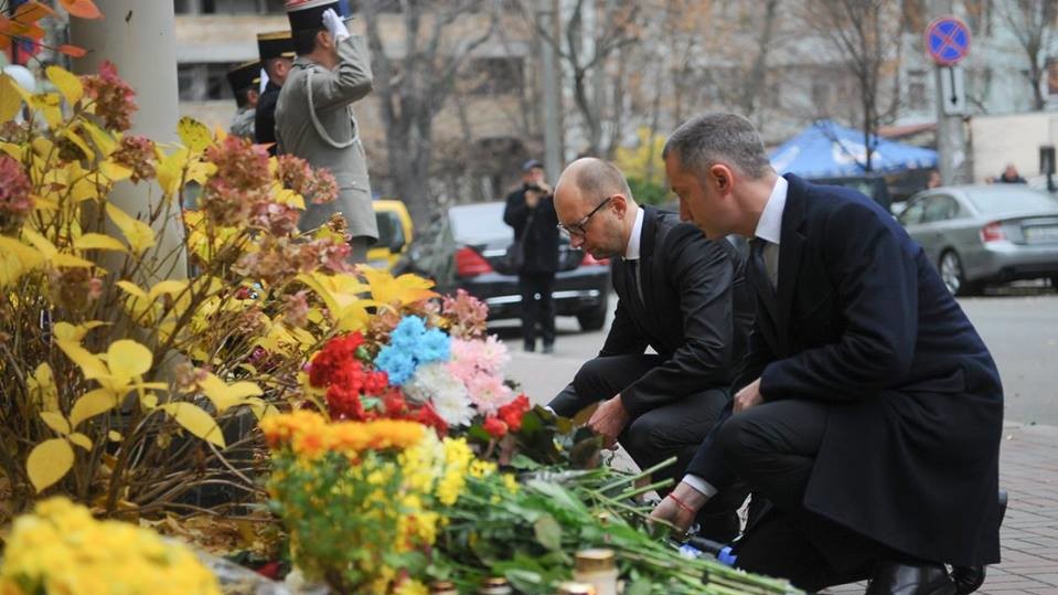До диппредставництва на вул. Рейтарській у суботу вранці прибули президент України Петро Порошенко, прем'єр-міністр України Арсеній Яценюк та члени уряду. Вони поклали квіти біля будівлі посольства.