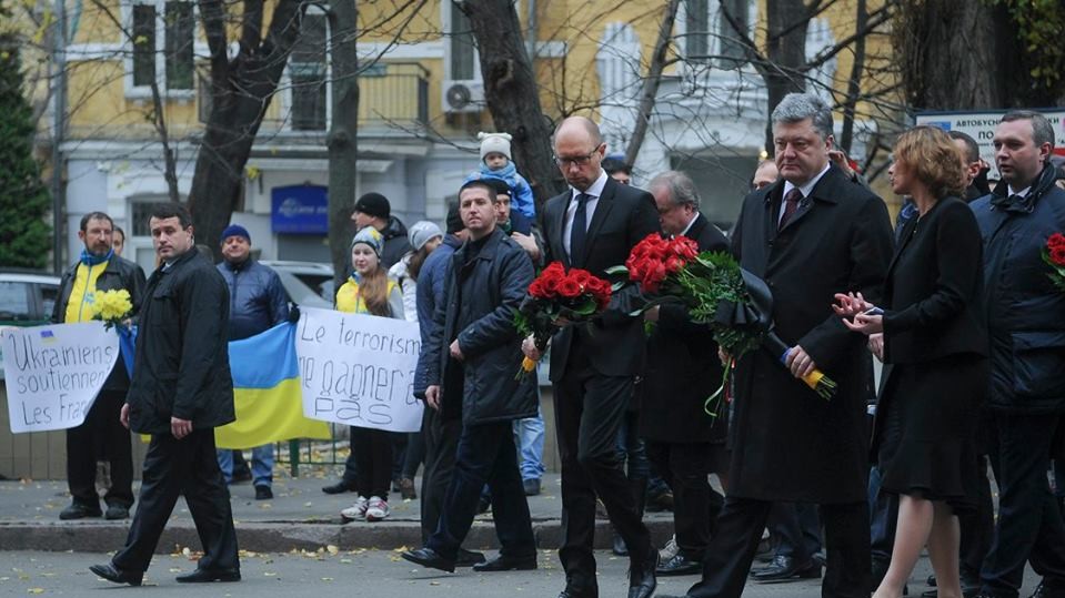 Керівництво української держави прибуло до будівлі посольства Франції в Києві, щоб висловити співчуття французькому народу у зв'язку з терактами в Парижі.