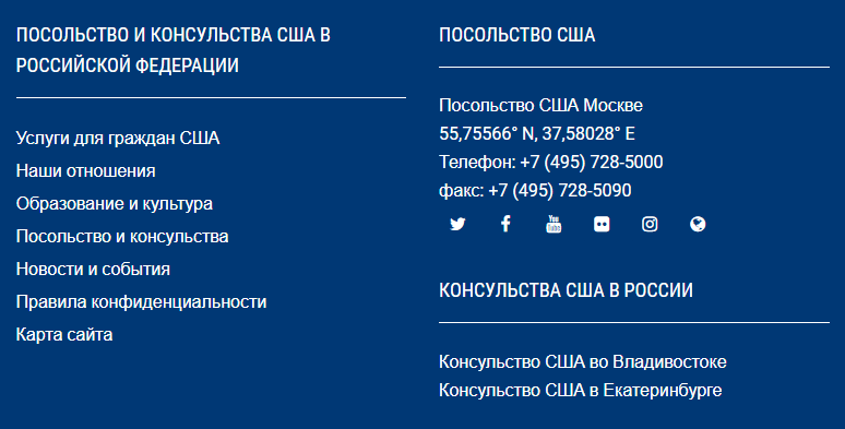 Посольство США у Москві внесло зміни на офіційний сайт, вказавши замість адреси географічні координати.