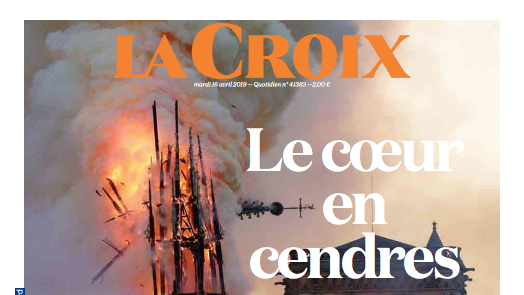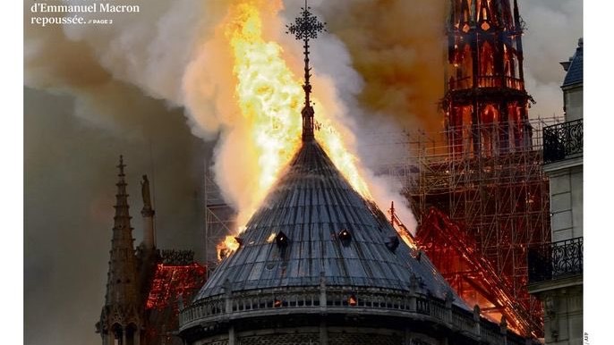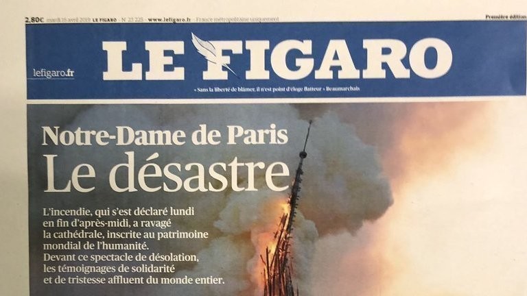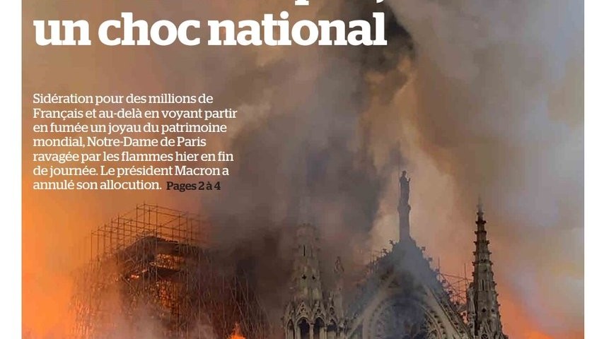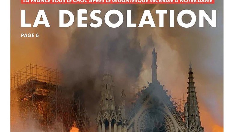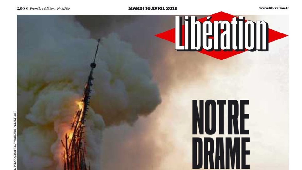 Газети і журнали, що вийшли сьогодні, не змовляючись обрали темою обкладинки пожежу Нотр-Дам-де-Парі.
