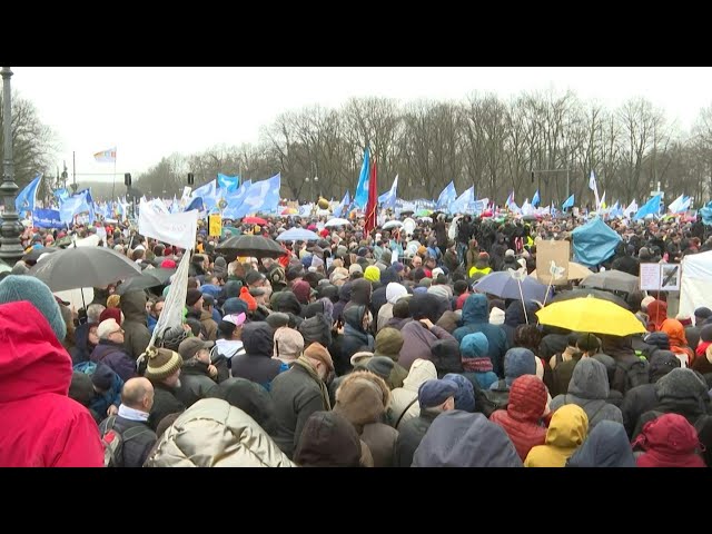 Демонстрація проти постачання Україні зброї для боротьби з російськими намірами експансії в суботу зібрала 10 тисяч людей у Берліні. Протест, організований лівими німецькими силами, відбувається через день після річниці широкомасштабного вторгнення. Все відбувається на тлі обіцянок про нові постачання озброєнь від західних союзників, нових санкцій проти Росії та демонстрації на підтримку Києву по всьому світу, пише Reuters.