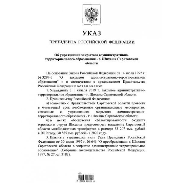 Російський президент Володимир Путін поставив свій підпис на указі №424, яким ліквідується "закрите адміністративно-територіальне утворення у місті Шихани Саратовської області Російської Федерації" - те саме, у якому могли виробляти нервово-паралітичну речовину "Новачок", яка стала причиною загибелі британки і важкого отруєння ще трьох осіб.