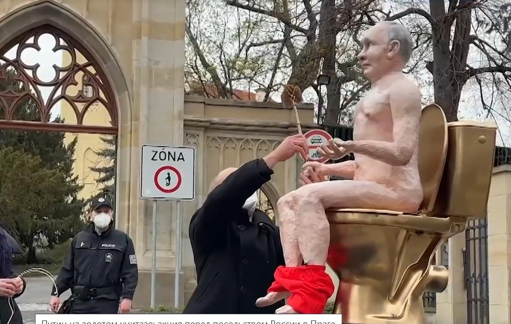 У квітні 2021 року в Празі, навпроти посольства РФ, активісти встановили скульптуру Путіна, що сидить на золотому унітазі.