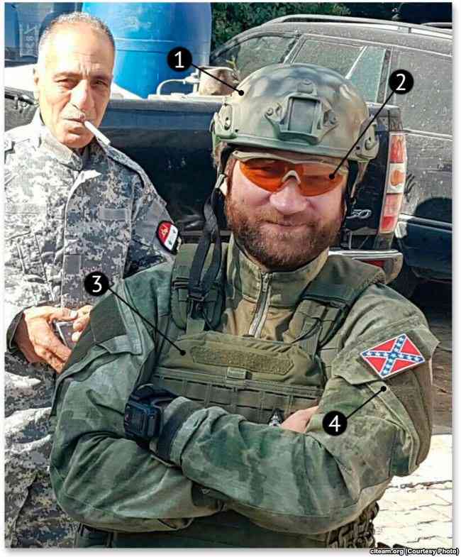 Експерти CIT звернули увагу, що одна з цих фотографій – людини з автоматом у кузові пікапу – у багатьох деталях співпадає зі знімком, опублікованим Олегом Блохіним у своєму акаунті у "ВКонтакте". Зброя – такий же доопрацьований автомат Калашнікова, як і на фото "бійців ПВК Туран". Сам пікап точно такого ж забарвлення і з таким же тентом не раз з'являється у репортажах Блохіна з Сирії. Екіпіровка "туранівця", що стоїть у кузові пікапу, до найдрібніших деталей збігається з тією, що можна побачити на фото Блохіна з міста Дейр-ез-Зор. У Facebook Блохіна є відео, де він їде у цій екіпіровці по сирійській пустелі в кузові пікапу.